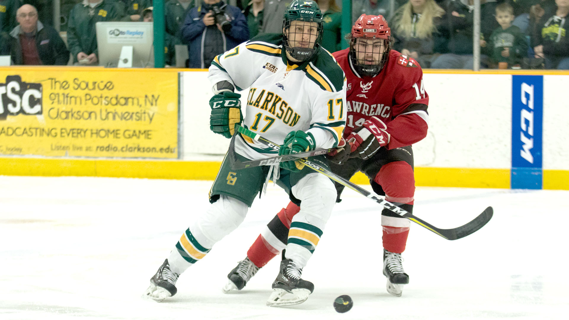 NCAA DI: The Clarkson Golden Knights got a big victory on Saturday night, 3-0 over St. Lawrence, thanks in part to a pair of former Bruins, Jake Kielly (14-15) and Nico Sturm (14-15).