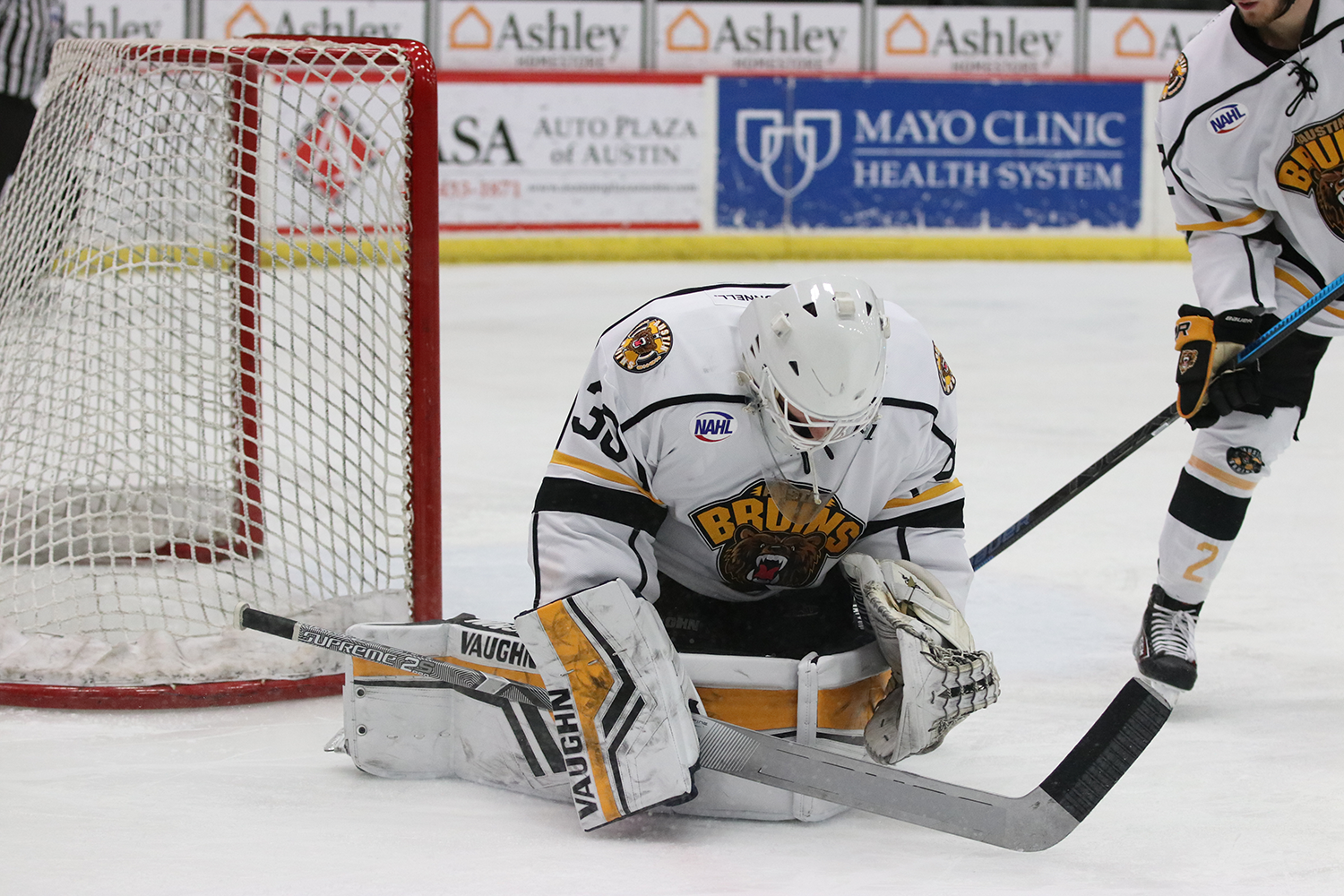 Friday night’s game at Riverside Arena wasn’t one filled with goals. The battle of the Millers – Brett for Austin and Andrew for Bismarck – proved to be the story of the game. Each team’s goaltender and defensive unit held steady throughout the game. Through two periods, neither team had given up a goal and neither team had committed a penalty. After two periods of play, even the shot totals were low as both teams blocked shots and forced the other to take chances that never found the goaltender. Austin led the way in shots after 40 minutes, 13-9.
