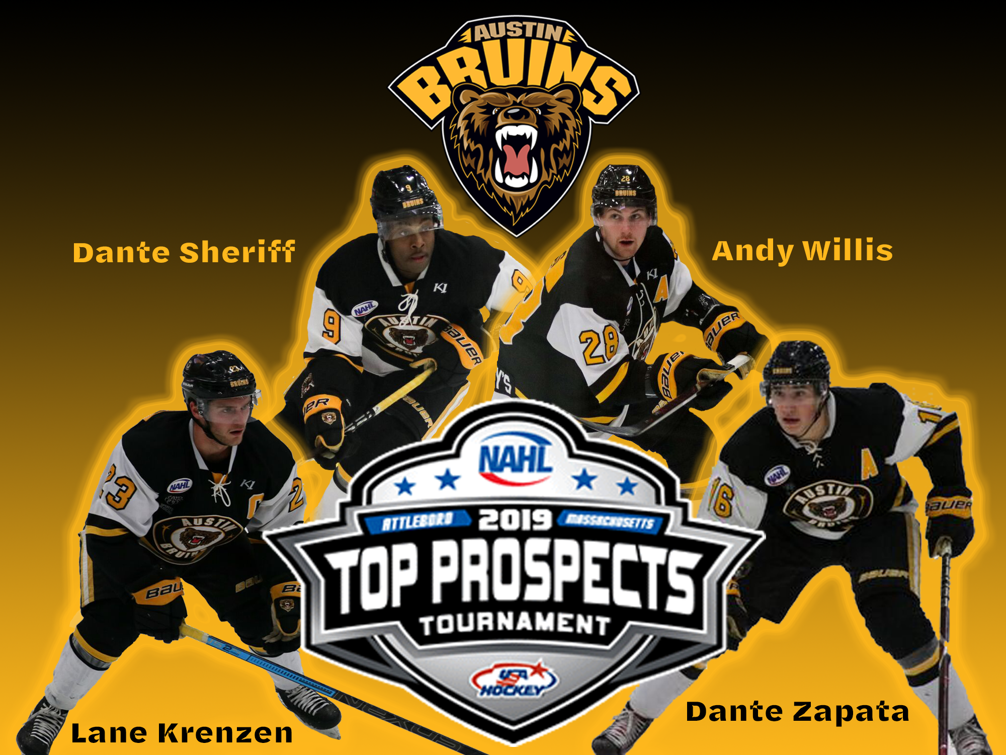 AUSTIN, Minn. – The Bruins will be sending a total of six players to this season’s NAHL Top Prospect Tournament later this month. Lane Krenzen, Dante Sheriff, Andy Willis, and Dante Zapata will all represent the black-and-gold in the league’s annual tournament, while Jared Christy will play in the South division. In addition, Dylan Davies has been chosen to compete on one of the Selects teams.