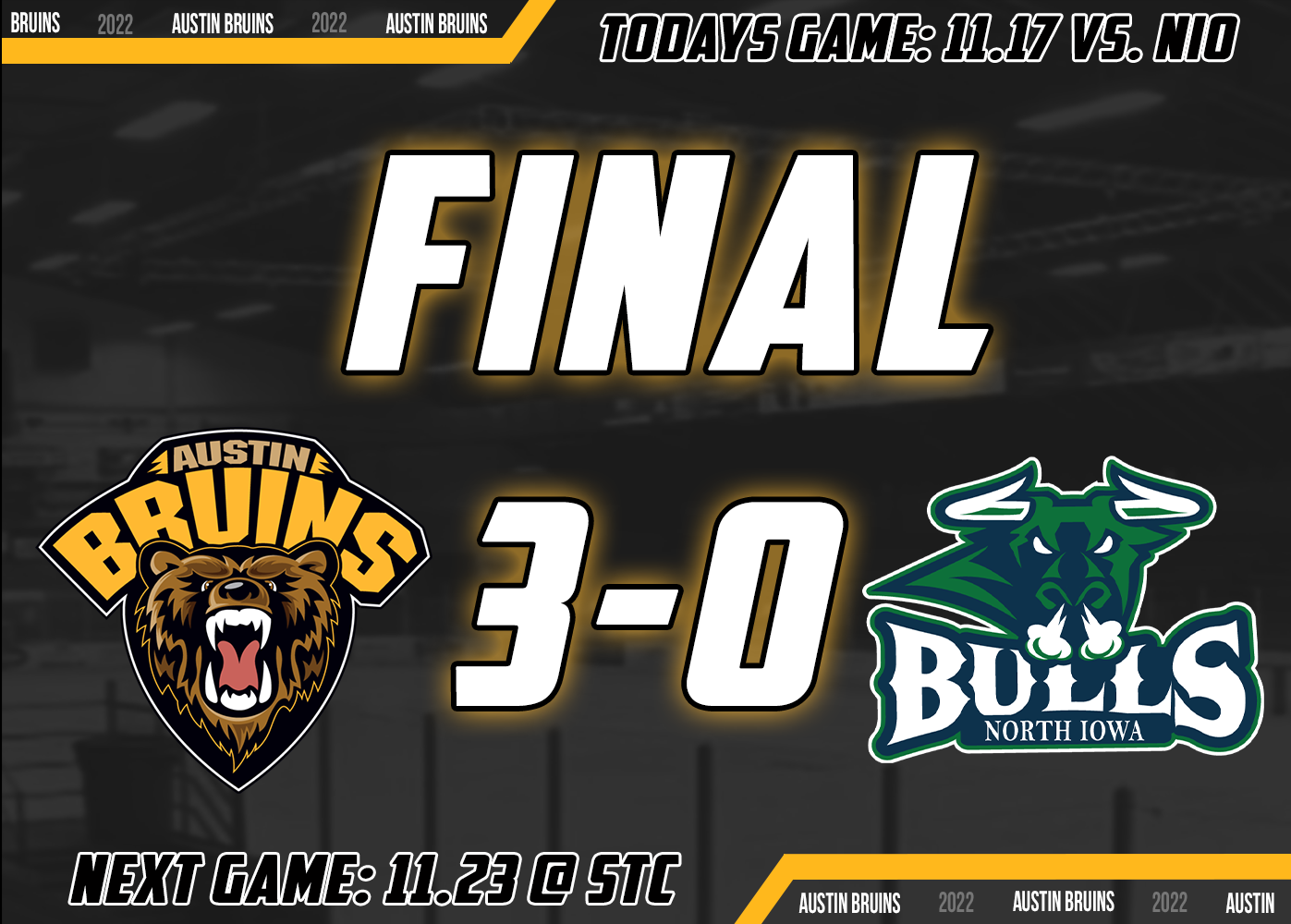 AUSTIN, MN – The wins keep on coming for the Bruins as they shut out the North Iowa Bulls Thursday night at Riverside Arena.