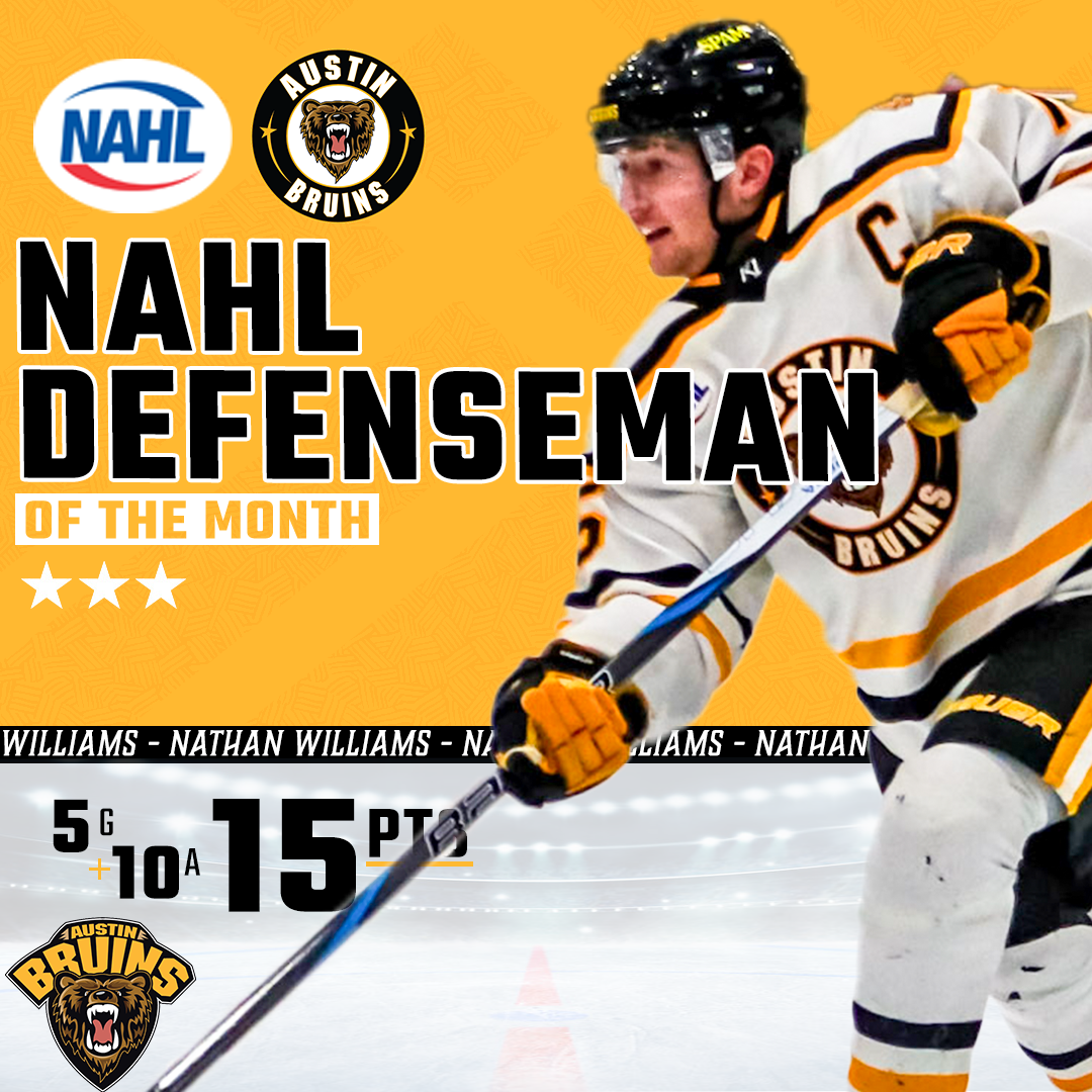 AUSTIN, MINN. – Austin Bruins Captain Nathan Williams has been named the Bauer Hockey NAHL Defenseman of the Month for January, the league announced on Tuesday.